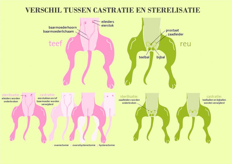 Nog beter is gewoon niet ingrijpen en zorgen dat je reutje niemand zwanger kan maken en je teefje niet ongewenst zwanger kan worden.