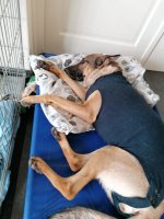 Wat is verlatingsangst of verlatingsgerelateerd gedrag?Honden met verlatingsangst ervaren paniek, angst, enorme stress als ze alleen worden gelaten. Ze ervaren dat vaak in zo'n danig mate dat ze niet rustig kunnen zijn vooraleer hun baasje terug binnenkomt. Er is dan vaak een explosie van geluk te zien om een tijdje later echt te 'crashen' en in slaap te donder...