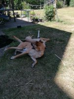 Boden en ik genoten van het ochtendzonnetje. We deden een flinke wandeling. Hij was superbraaf. Hij liep aan het einde van de leiband, zonder te trekken. Dat laat ik hem toe, ik vind dat hij zijn vrijheid daar mag hebben. Hij hoeft niet als een robothond naast me te blijven lopen. Enkel op onze straat wil ik dat wel, want er is ge...