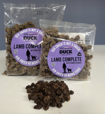 Duck Lamb complete with seaweed & garlic air dried 650gr kunnen gebruikt worden bij het trainen van uw hond, speurwerk of gewoon als lekkere snack.